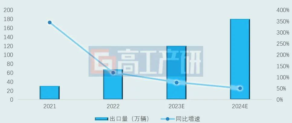 2024年,盡管面臨一系列不利外部環(huán)境,如歐盟可能對(duì)中國新能源汽車的反補(bǔ)貼調(diào)查、美國FEOC細(xì)則公布等,但不會(huì)扭轉(zhuǎn)中國新能源汽車出口持續(xù)增長的勢頭。預(yù)計(jì)2024年我國新能源汽車出口量有望達(dá)到180萬輛,同比增長超過50%。