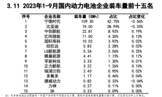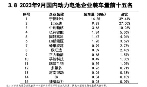 9月份國內(nèi)動力電池企業(yè)裝車量TOP15分別是:寧德時代、比亞迪、中創(chuàng)新航、億緯鋰能、國軒高科、LG新能源、蜂巢能源、欣旺達(dá)、正力新能、孚能科技、瑞浦蘭鈞、多氟多、河南鋰動、SK On、捷威動力。